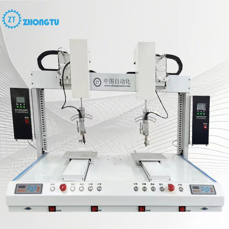 Robot de soudage automatique avancé conçu pour les applications de soudage de précision dans les usines de fabrication, les processus SMT et DIP. Comprend des doubles têtes de soudage et un axe de rotation pour une flexibilité et une productivité accrues.